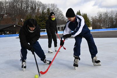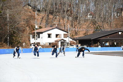 本校は、全国の公立高等学校で唯一スケートリンクを持っている学校です毎年、授業の一環で各学年スケート教室を開催しております。初めてスケート靴を履いた生徒ともいたようですが、すぐに慣れてリレーをしたりアイスホッケーをしたりと、楽しんだ様子でした