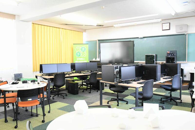 Creator's LabはDXハイスクール事業の補助金を活用して配備した教室です。高性能PCをはじめ、3Dプリンタ、電子黒板、VRゴーグル、360°カメラなど、先進的な機材を取りそろえており、生徒の創造活動の可能性をさらに広げるための空間となっています